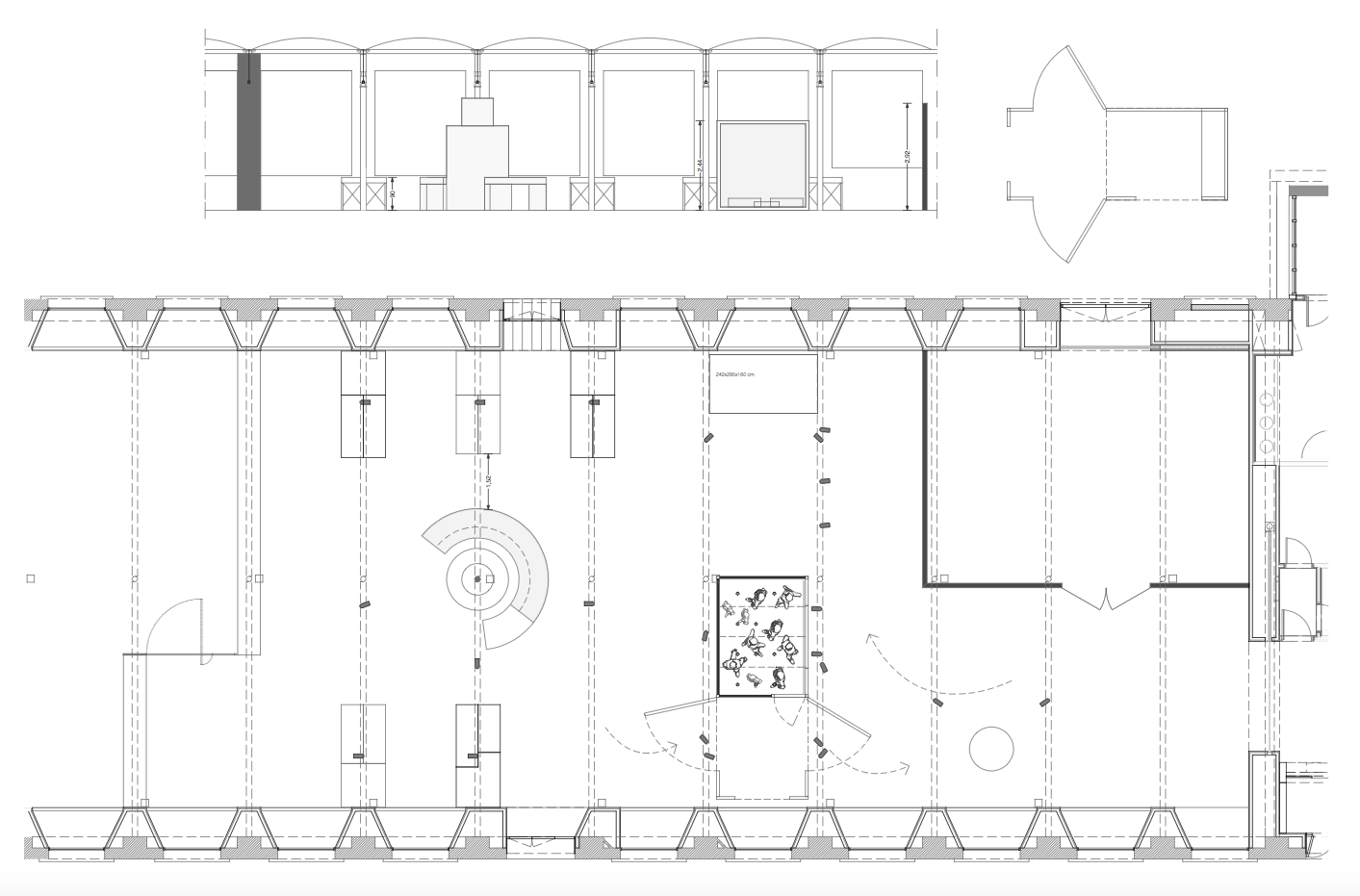 Hi ha un espai tècnic de treball i una zona de reserva i magatzem. Una part d’aquest espai és visitable i esdevé una prolongació de l’espai expositiu de la primera planta. Hem dissenyat una estanteria separadora d’unes dimensions espectaculars.