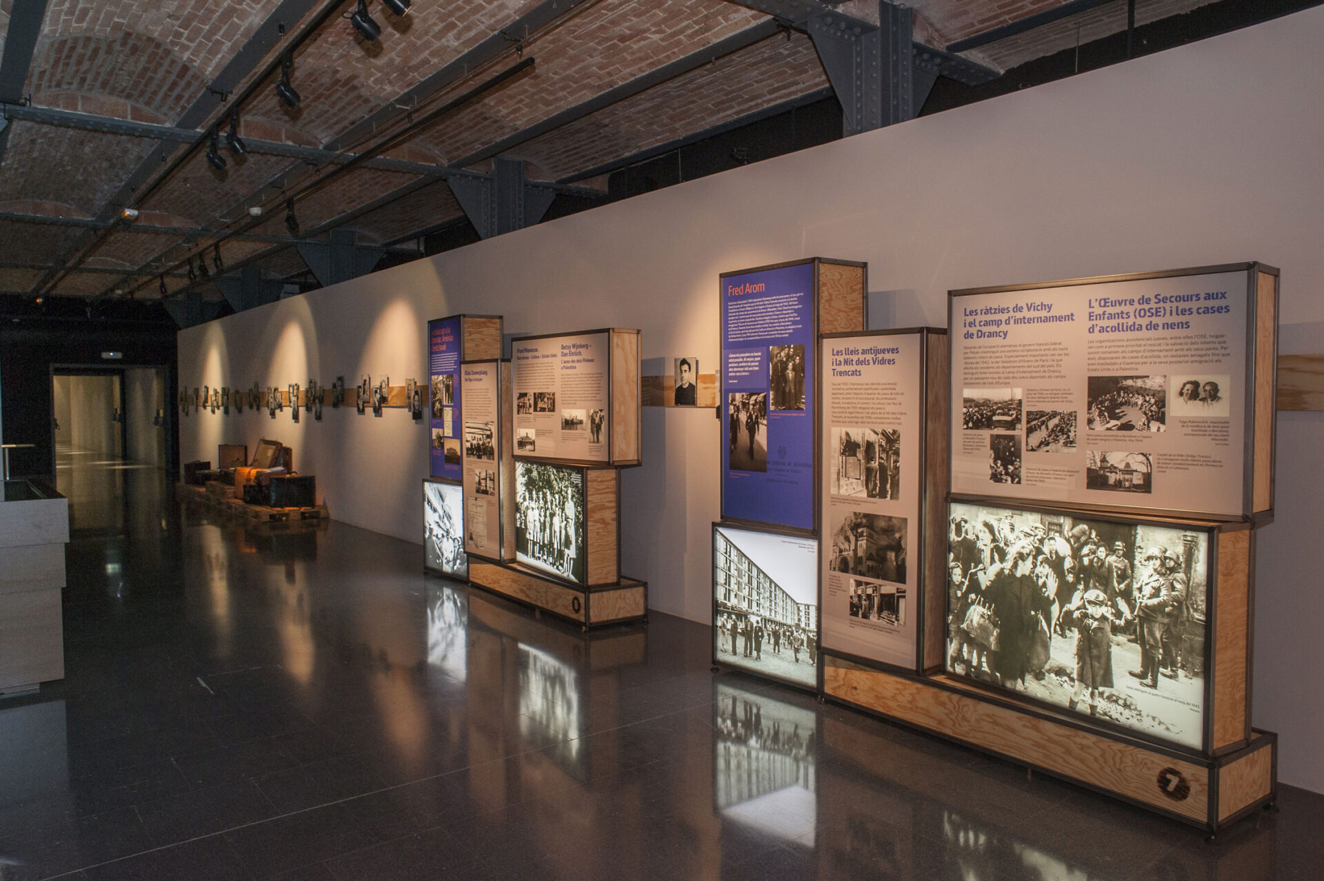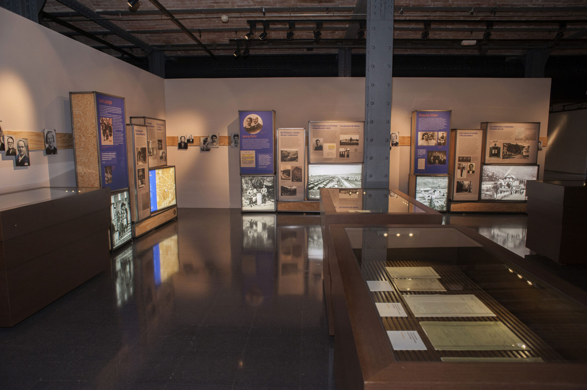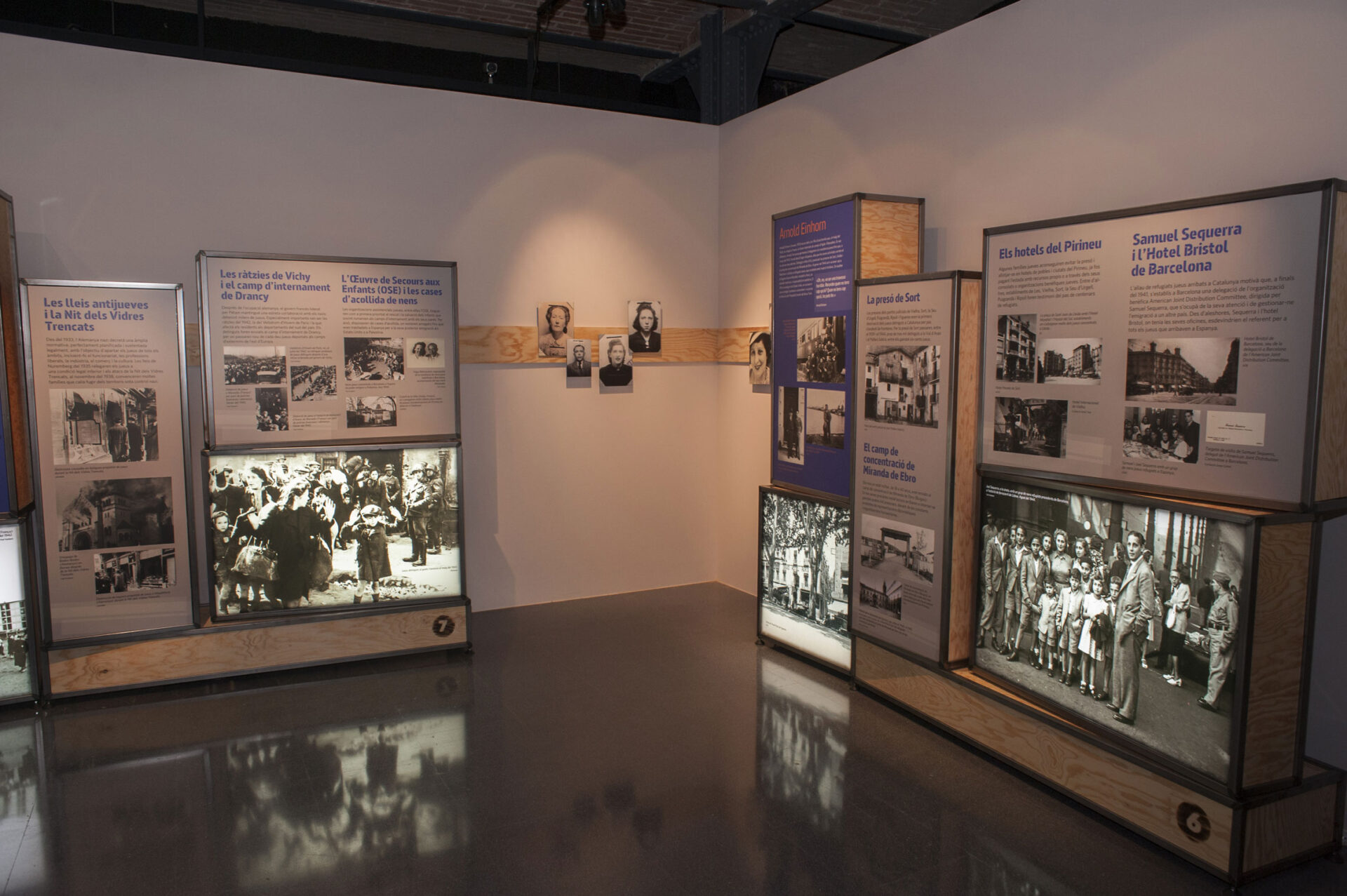La mostra està dividida en 8 àmbits, cadascun dels quals porta el nom d’una família o persona que va patir persecució durant aquells anys de guerra. D’una banda, aquests àmbits permeten repassar alguns dels trets definitoris de la persecució i la fugida, així com les duanes, les xarxes d’evasió, els passadors, les expulsions, les presons o els camps de concentració, i de l’altra, ens endinsen en un episodi prou desconegut del nostre passat recent, en el qual Catalunya va tenir un paper cabdal en esdevenir terra de llibertat per a milers d’homes i dones que fugien del règim nazi.